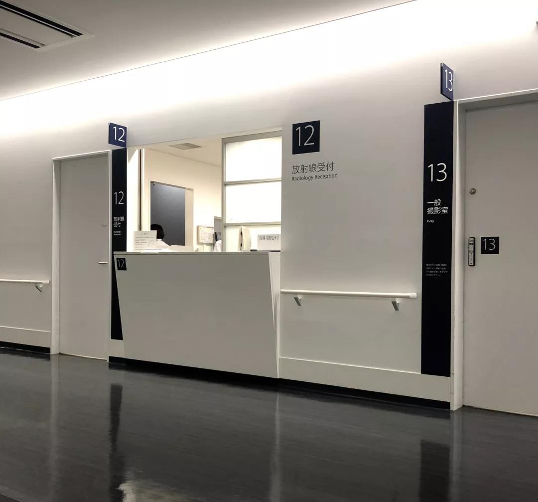 從候診廳一直往里走,進入放射線診區(qū)。燈光從候診廳的暖白光變成較冷的純白光,地板也從地毯變成了深藍色高反射度地膠: