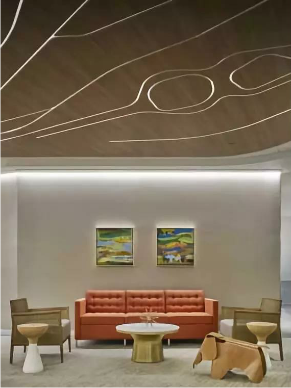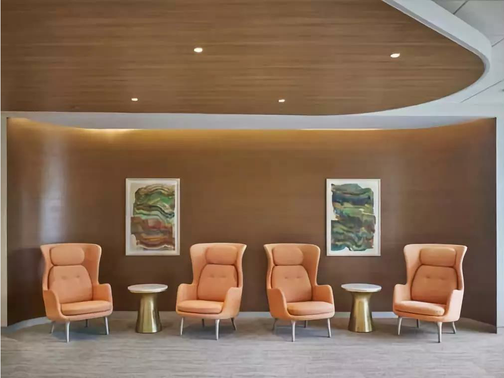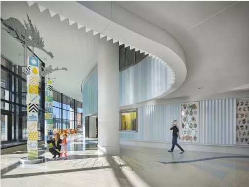位于美國芝加哥的雪莉瑞安行為研究中心是一個(gè)轉(zhuǎn)化研究機(jī)構(gòu),為患有創(chuàng)傷性腦損傷、中風(fēng)、截肢和癌癥的患者提供復(fù)雜的康復(fù)治療。該項(xiàng)目室內(nèi)設(shè)計(jì)注入大膽的色彩和圖形,在整個(gè)空間中注入能量。在候診大廳歡迎患者的是藝術(shù)家佩·懷特的設(shè)計(jì)的“密史脫拉風(fēng)”吊頂(拋光不銹鋼材質(zhì)),它象征性地加強(qiáng)了運(yùn)動(dòng)、轉(zhuǎn)變、可能性和希望的力量。