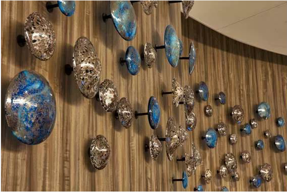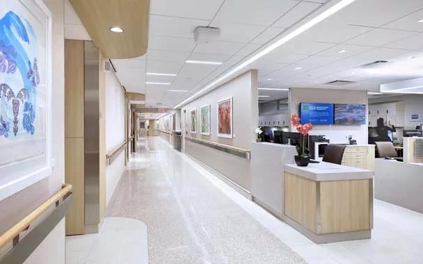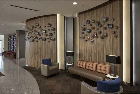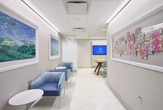 美國紐約斯隆·凱特琳癌癥中心新建的骨髓移植樓為那些在長時(shí)間住院的患者提供了支持,這些骨傷患者需要經(jīng)常在走廊里活動(dòng),以恢復(fù)體力。癌癥中心室內(nèi)藝術(shù)設(shè)計(jì)項(xiàng)目的目標(biāo)是既引人入勝又充滿活力,同時(shí)在風(fēng)格和媒介方面也各不相同。這些裝置還支持尋路程序,并幫助標(biāo)記進(jìn)入病房。
