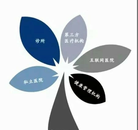 非公醫(yī)療服務發(fā)展迅速的五大領域,即私立醫(yī)院、診所、第三方醫(yī)療機構、 互聯(lián)網醫(yī)院、健康管理機構。