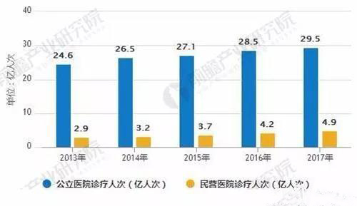 2013-2017年中國醫(yī)院診療人次數(shù)量統(tǒng)計情況