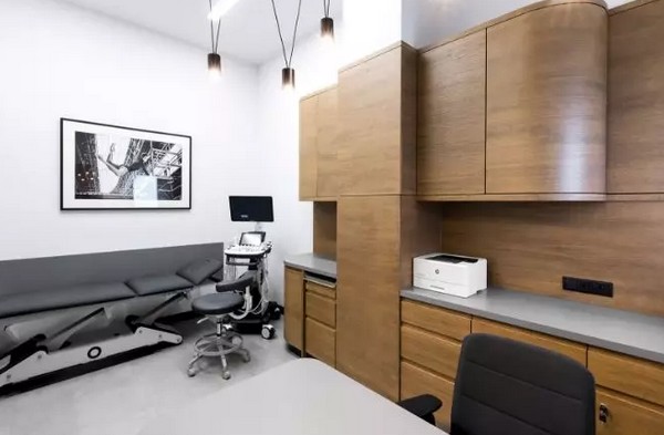 黑白為主色調(diào)的診療室,與整個診所設計風格相呼應,簡潔、大方,不僅沒有冰冷感、還給人一種科技感。