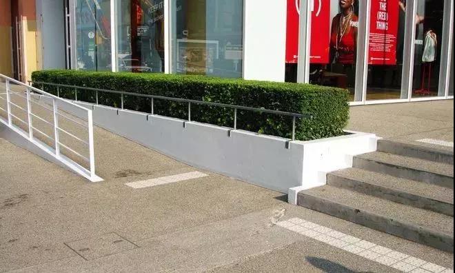1、建筑的入口、室內(nèi)走道及室外人行通道的地面有高低差和有臺階時,必須設(shè)符合輪椅通行的坡道,在坡道和兩級臺階以上的兩側(cè)應(yīng)設(shè)扶手。