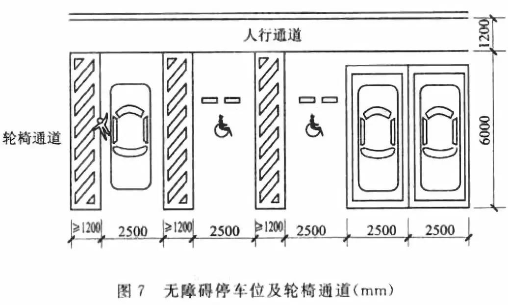 3、停車車位的輪椅通道與人行通道的地面有高度差時,應(yīng)設(shè)符合輪椅通行的坡道。