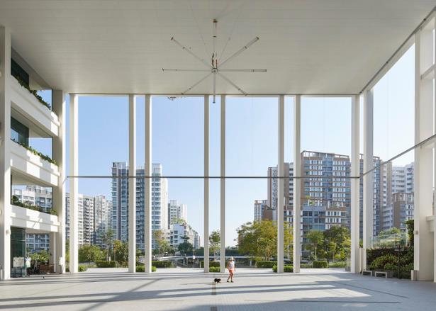 俯瞰公共花園的平臺上是公共食堂、餐廳、教育中心以及綜合醫(yī)療服務(wù)室以及戶外區(qū)域。這些空間與梯臺花園直接相連,讓就餐活動分散到這些區(qū)域中,同樣地,綜合醫(yī)院等候區(qū)也可欣賞梯臺花園及水渠景觀。