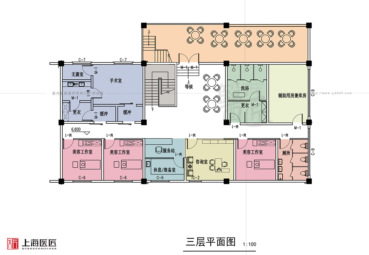 室內(nèi)以淺色系為主色調(diào),使整個空間顯得立體、敞亮、尊貴,同時通過個性的飾品、深色的地毯、別致的花藝、高檔的家具等軟裝來烘托空間氛圍,突出裝修特色,讓空間更有情調(diào),從而有效緩解顧客的精神壓力,并放松自己的心情來接受檢查和診治。