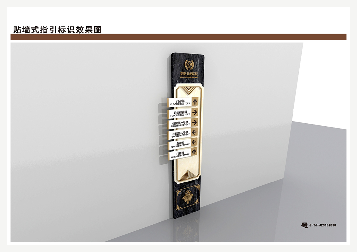 貴陽天使醫(yī)院的導(dǎo)視系統(tǒng),從設(shè)計(jì)效果上來看,確實(shí)一般,這個(gè)我們得承認(rèn)。但是根據(jù)客戶的想法設(shè)計(jì)是這樣,我們也不能只看效果圖,來看一下設(shè)計(jì)思路,底層為黑色花紋大理石的仿真材料,面板采用同樣材質(zhì)的黃色紋,字也用類僅的材質(zhì)。有人會(huì)想,天使醫(yī)院為什么要這樣設(shè)計(jì),也不符合“天使”這兩個(gè)字?因?yàn)榈诪椤按罄硎保淼暮裰?、?shí)力、技術(shù)、設(shè)備先進(jìn),只有實(shí)力雄厚、技術(shù)過硬、設(shè)備先進(jìn)的醫(yī)院,才有資格做好“天使”……