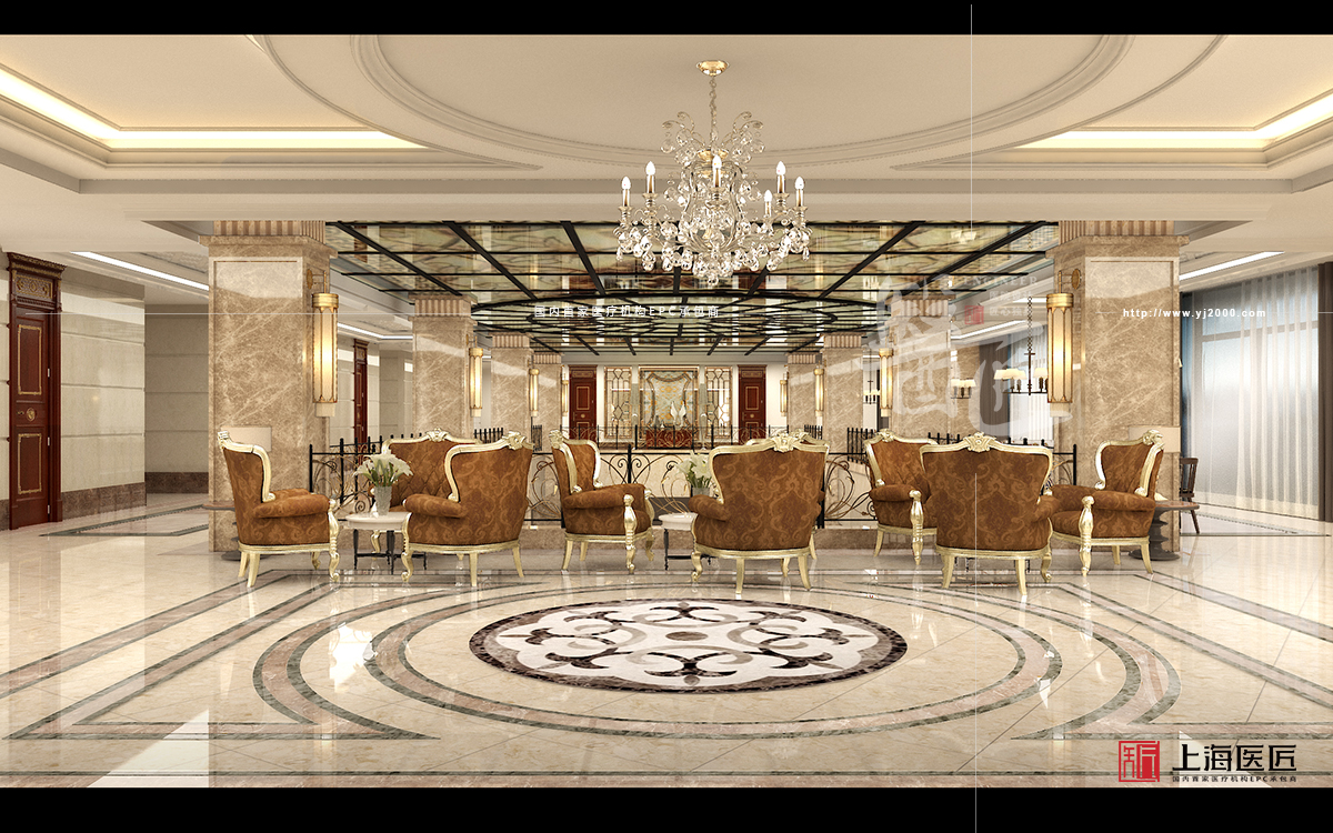 本案以新古典為設(shè)計(jì)風(fēng)格,整體環(huán)境高雅而和諧,在色調(diào)上,選用前淺金、銀灰為主調(diào),共享空間用家具、吊燈等裝飾來(lái)烘托高貴、典雅且不失浪漫的氛圍,營(yíng)造一個(gè)溫情復(fù)古、高雅莊重的環(huán)境,不僅滿足了現(xiàn)代女性的生理心理,同時(shí)也呼應(yīng)醫(yī)院提出的人性化感動(dòng)式服務(wù)。